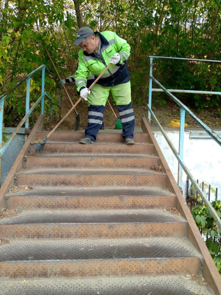 Очистка лестничных сходов по ул. Кижеватова от грязи и мусора