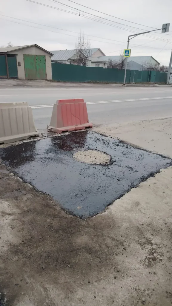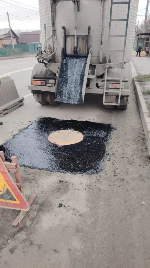 Ямочный ремонт дороги по ул. Карпинского литым асфальтом