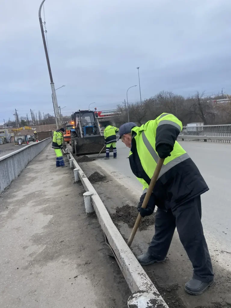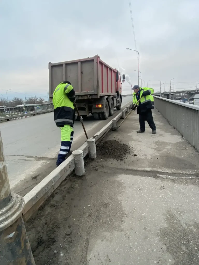 Ручная уборка прилотковой части дороги Большого Сурского моста и эстакады