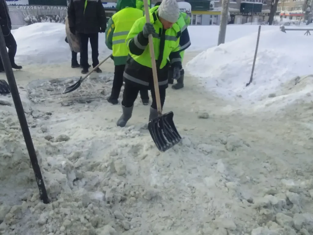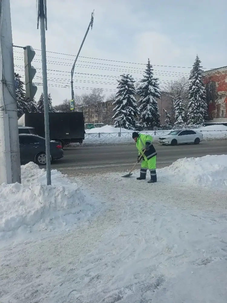 Расчистка от снега и обработка пескосоляной смесью пешеходных переходов по городу