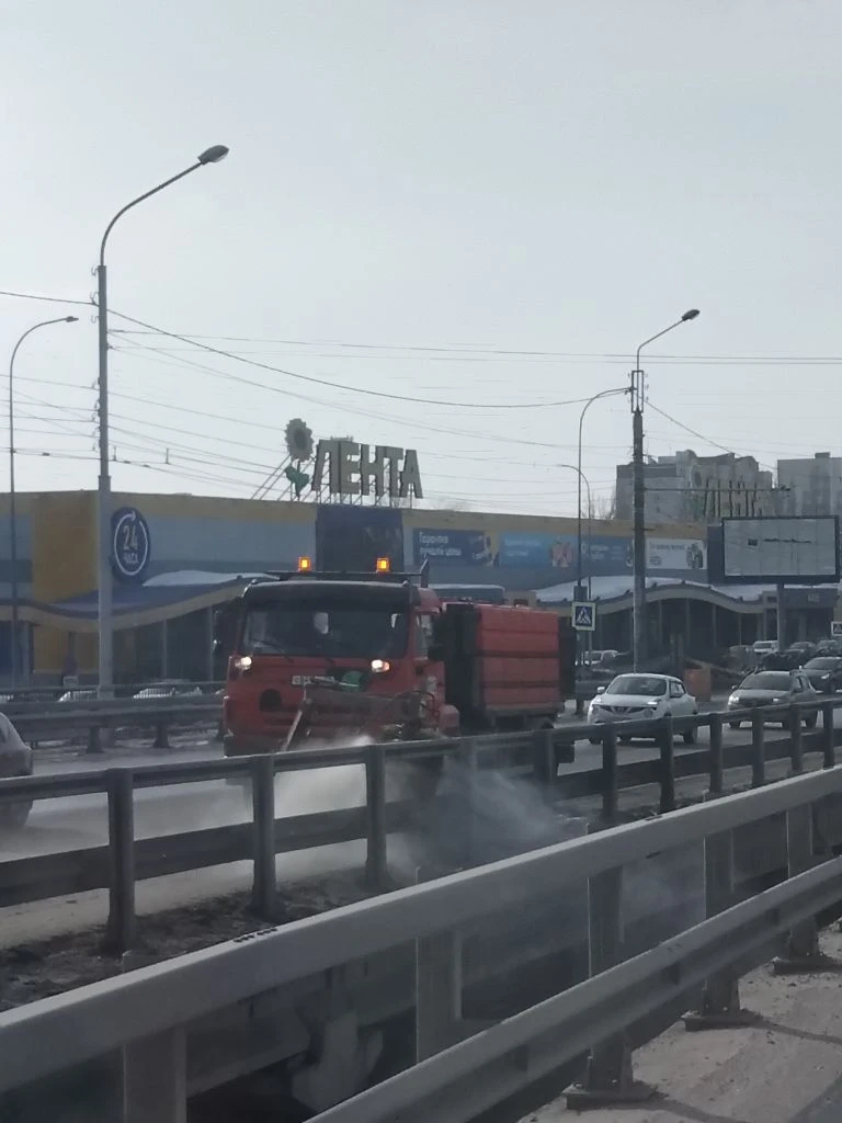Мойка ограждений безопасности на путепроводе по ул. 8 Марта