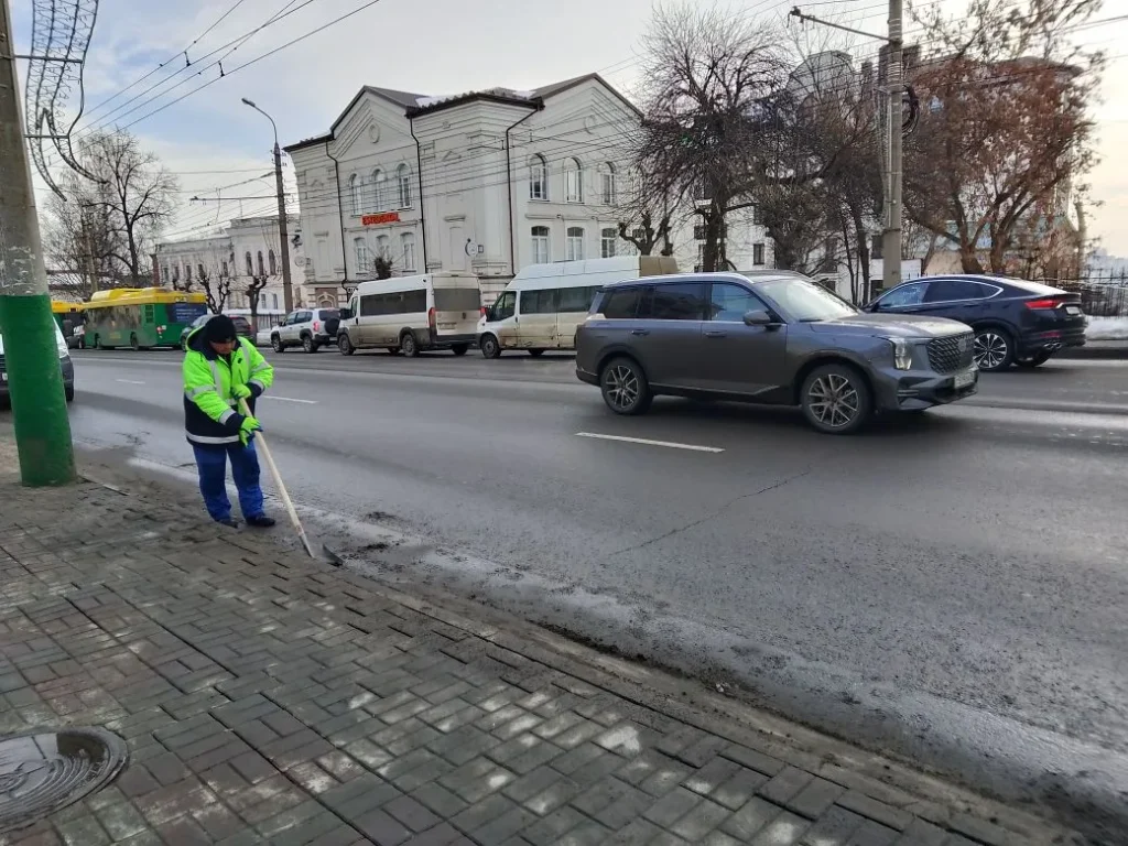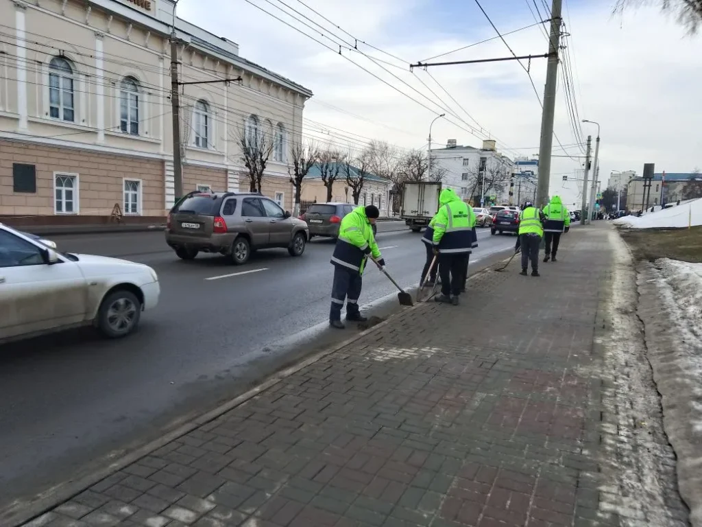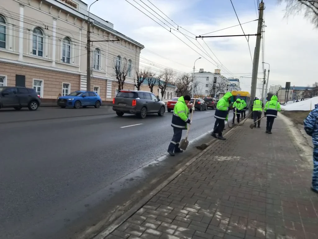 Ручная уборка зимних накоплений с прилотковой части дороги по ул. Кирова